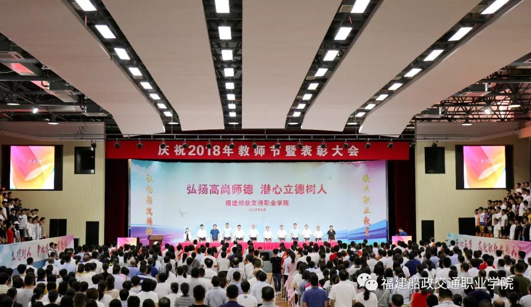 弘揚(yáng)高尚師德,潛心立德樹人。9月10日下午,福建船政交通職業(yè)學(xué)院慶祝2018年教師節(jié)暨表彰大會(huì)在文體中心隆重舉行。省教育廳職成處處長(zhǎng)張文東、教師工作處處長(zhǎng)楊振坦,省經(jīng)信委技術(shù)進(jìn)步處處長(zhǎng)陳庚,省交通運(yùn)輸廳科教處處長(zhǎng)張利,教育團(tuán)工委書記蘇貽堆,學(xué)院黨委書記張海明,學(xué)院黨委副書記、院長(zhǎng)陳錦輝,學(xué)院黨委副書記韓孟強(qiáng),學(xué)院副院長(zhǎng)高汝武、陳貞健、陳艷紅,學(xué)院紀(jì)委書記張輝出席大會(huì)。離退休教職工代表、全體教職工、學(xué)生代表參加大會(huì)。會(huì)議由學(xué)院黨委副書記韓孟強(qiáng)主持。