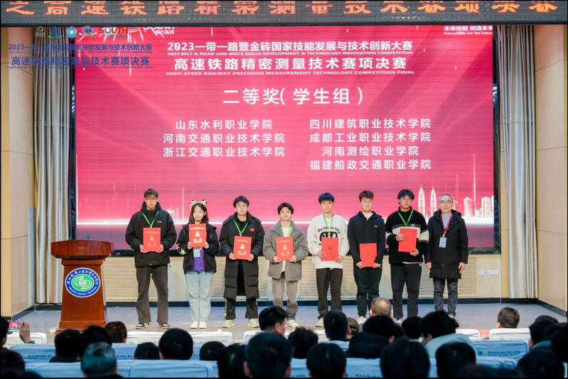 近日,2023一帶一路暨金磚國家技能發(fā)展與技術(shù)創(chuàng)新大賽“高速鐵路精密測量技術(shù)”賽項全國總決賽在陜西鐵路職業(yè)技術(shù)學院舉辦。來自國內(nèi)外的39支參賽隊、156名參賽選手參加比賽。經(jīng)過激烈角逐,我院榮獲“優(yōu)秀組織獎”;軌道交通學院簡瑞杰、陳俊榮、馬濤、向鵬鵬4位同學榮獲團體賽二等獎;指導老師李閩、林淦獲得“優(yōu)秀指導教師”榮譽稱號。