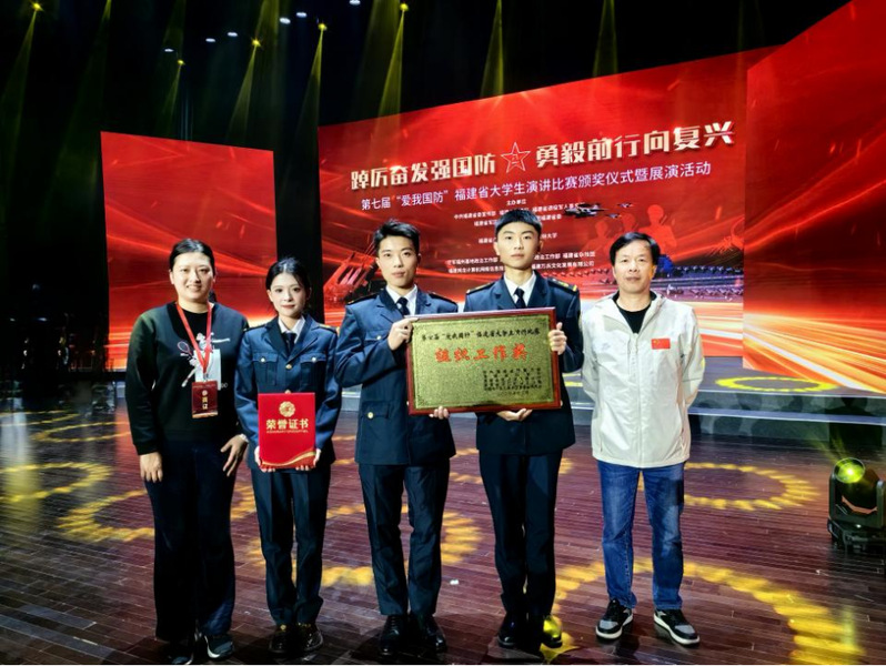 近日,福建省第七屆“愛我國防”大學(xué)生演講比賽在福建農(nóng)林大學(xué)落下帷幕。我院選送的《愛我國防,吾輩當(dāng)自強(qiáng)》作品榮獲大賽優(yōu)勝獎(jiǎng),并作為三個(gè)獲獎(jiǎng)代表之一在頒獎(jiǎng)儀式上進(jìn)行展演。此外,我院還榮獲優(yōu)秀組織獎(jiǎng)。
