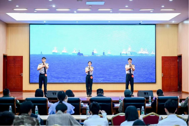 比賽中,來自我院航海學(xué)院的張?jiān)娾?、汽車學(xué)院的林子豪和陳嘉洛三位同學(xué)講述了船政先烈誓死海防、與艦共存的英勇事跡,慷慨激昂地歌頌了國家強(qiáng)盛、軍隊(duì)強(qiáng)大帶給人民的安全感,號召廣大青年堅(jiān)定信念、保衛(wèi)國家、擔(dān)當(dāng)民族復(fù)興大任,生動詮釋了新時(shí)代大學(xué)生投身國防建設(shè)的熱血青春。