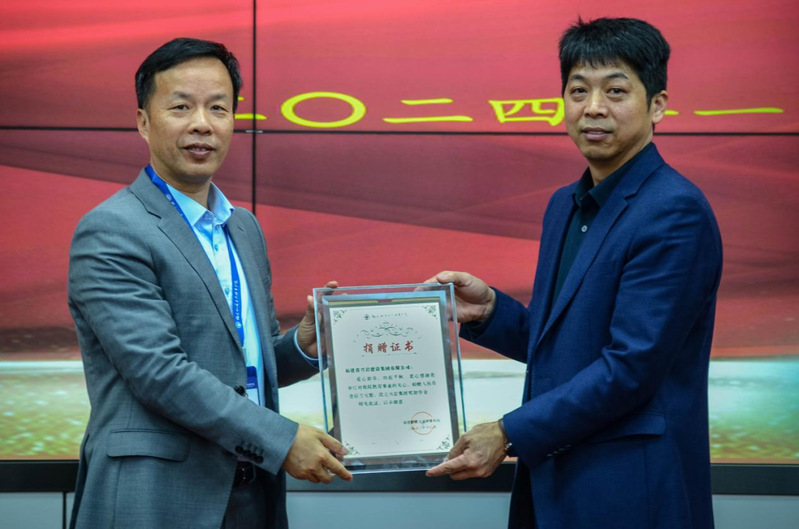 現(xiàn)場,王心金部長向興巖建設(shè)集團(tuán)頒發(fā)了捐贈(zèng)證書。