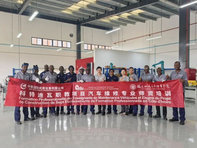 2023年9月至2024年1月,學(xué)院已出色完成中航科創(chuàng)成套公司(以下簡稱“中航成套”)科特迪瓦職教項(xiàng)目汽修專業(yè)在國內(nèi)為期4個月的師資培訓(xùn)。2025年6至10月,我院教師團(tuán)隊(duì)再次揚(yáng)帆啟航、跨越萬里,遠(yuǎn)赴科特迪瓦首都阿比讓ABOBO校區(qū),輸送“船政模式”職業(yè)教育品牌,圓滿完成了中航成套為期4個月的科特迪瓦職教項(xiàng)目汽車維修專業(yè)海外師資培訓(xùn)。我院精心選派了梁霖鋒、張光葳和陳星三位骨干教師,組成專家團(tuán)隊(duì)“送教上門”,創(chuàng)造性地采用了“培訓(xùn)+調(diào)研+標(biāo)準(zhǔn)開發(fā)”的融合式方法,確保了培訓(xùn)的高質(zhì)量與實(shí)用性??铺氐贤邍易畲蟮慕逃襟wJDMag刊發(fā)結(jié)業(yè)典禮報(bào)道,對專家團(tuán)隊(duì)精湛的專業(yè)技能和無私的奉獻(xiàn)精神給予了高度贊譽(yù)。