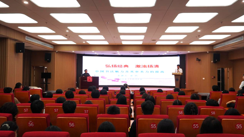 講座中,梁代教授以個人成長與書法結緣的經歷為引,講述他從孜孜求學的學子成長為推動中華優(yōu)秀傳統(tǒng)文化海外傳播“書法文化使者”的奮斗歷程,并結合經典作品與自身創(chuàng)作實踐,細致講解了執(zhí)筆、“用筆”的千古不易之法則,呼吁更多的書法愛好者從自身做起,提升審美,堅守傳統(tǒng),從筆墨中體悟“剛健有為”“虛實相生”的東方智慧。他還鼓勵青年學子錘煉技藝、修煉品格、涵養(yǎng)心靈,樹立遠大理想,在擔當中歷練,在盡責中成長,爭做“有理想、敢擔當、能吃苦、肯奮斗”的新時代青年。