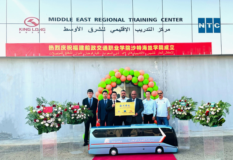 12月26日,福建船政交通職業(yè)學(xué)院與廈門金龍聯(lián)合汽車工業(yè)有限公司共建的沙特“海絲學(xué)院”在沙特阿拉伯王國(guó)吉達(dá)舉行揭牌儀式。廈門金龍沙特公司總經(jīng)理黃初俊、中東服務(wù)大區(qū)經(jīng)理王瓊,沙特NTC(National Trade Company LTD)公司銷售總監(jiān)亞瑟、售后服務(wù)經(jīng)理伊斯梅爾,汽車學(xué)院院長(zhǎng)蘇慶列、汽車實(shí)訓(xùn)中心主任黃知秋以及當(dāng)?shù)?0位學(xué)員等參加了揭牌儀式。