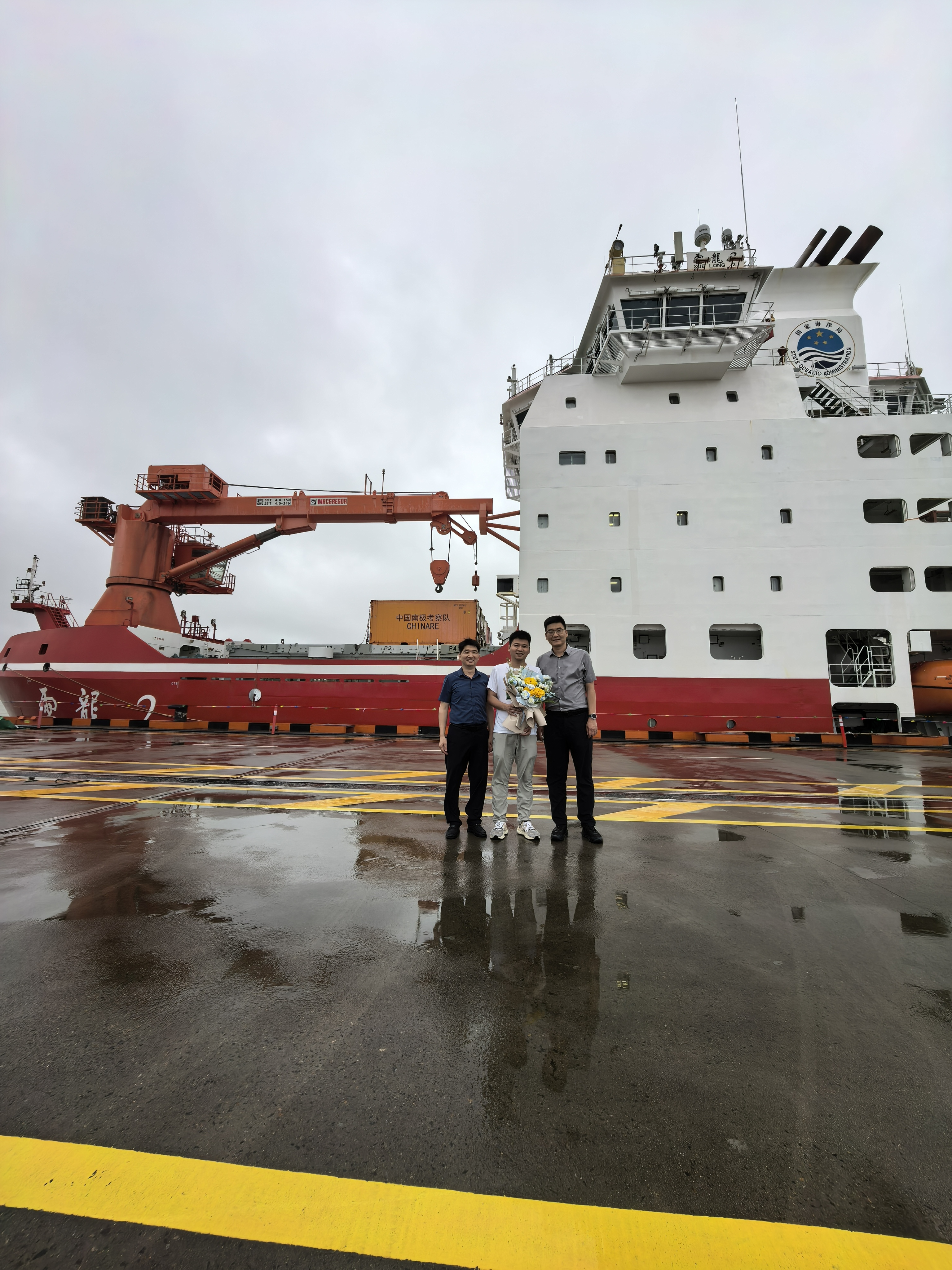 6月13日李翼院長一行三人赴上海迎接“雪龍2”號凱旋的劉學強老師,并祝賀圓滿返回上海母港。
