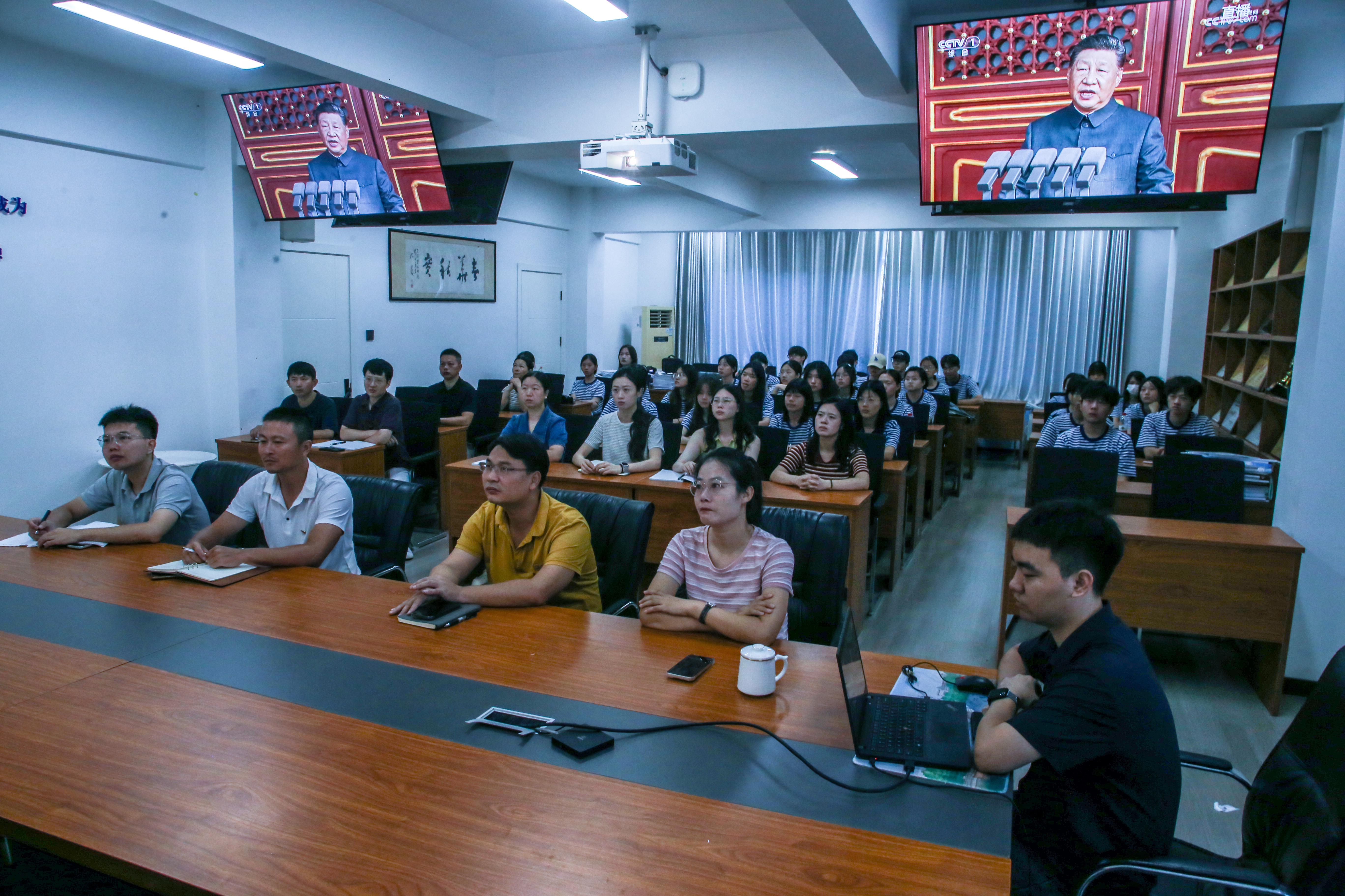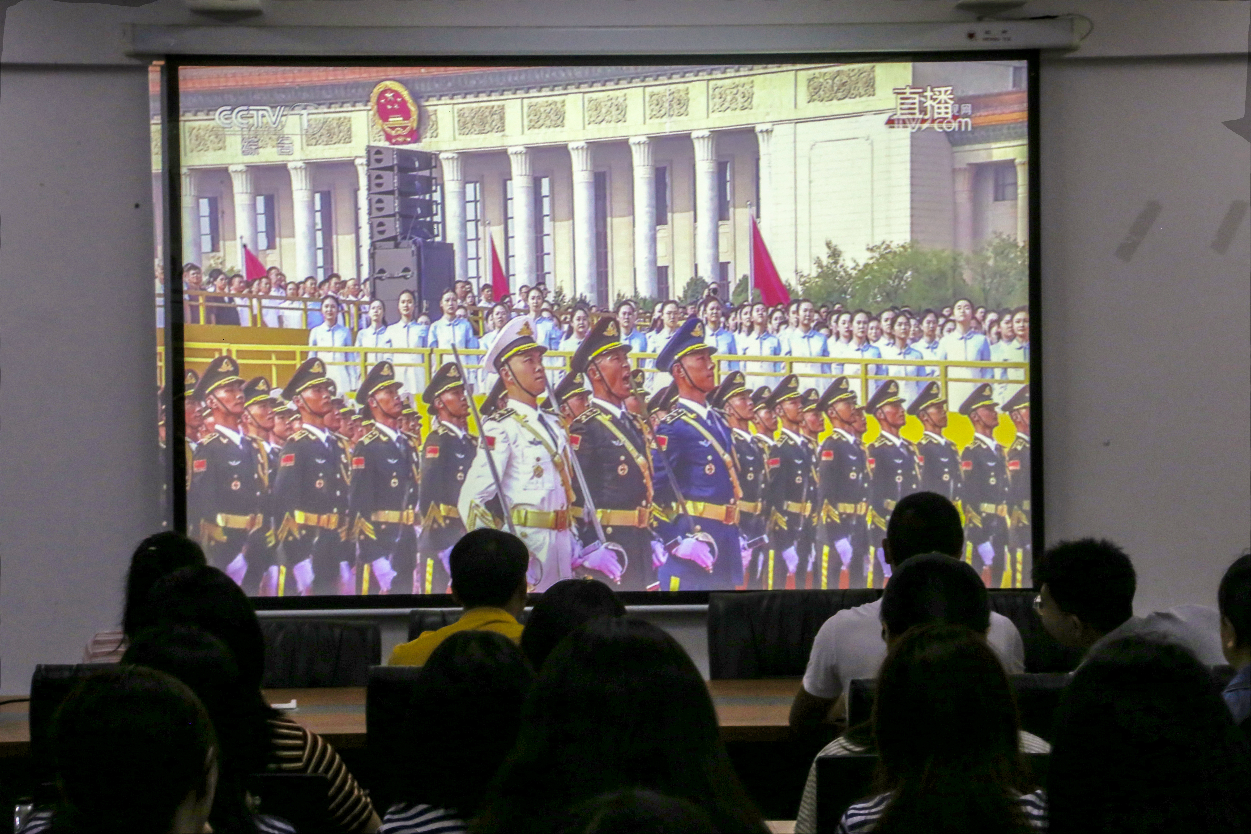 上午9時,航海學(xué)院的師生們便早早地齊聚在學(xué)院會議室、教室等場所。他們的臉上洋溢著期待與興奮,眼神中滿是對祖國的熱愛與敬意,靜靜地等待著閱兵式的開場。
