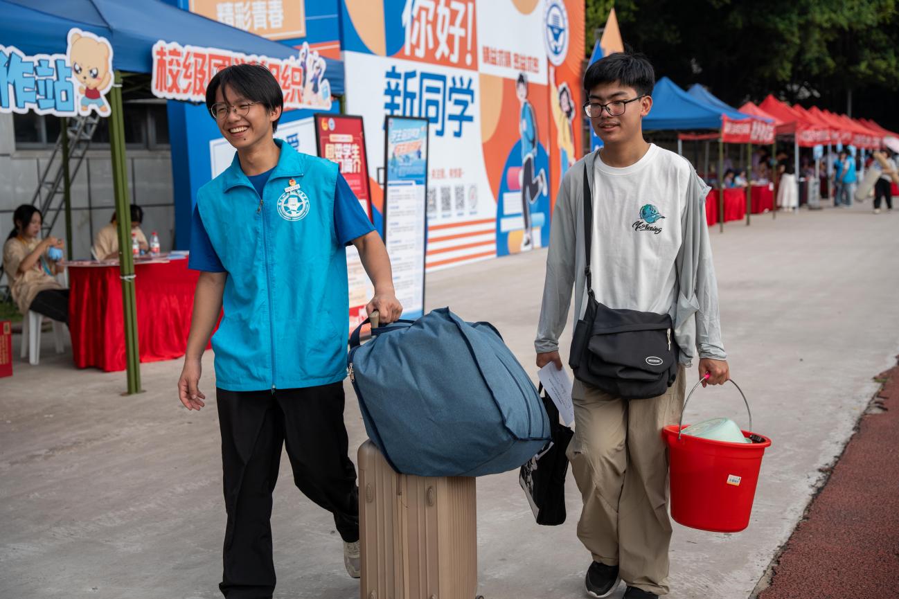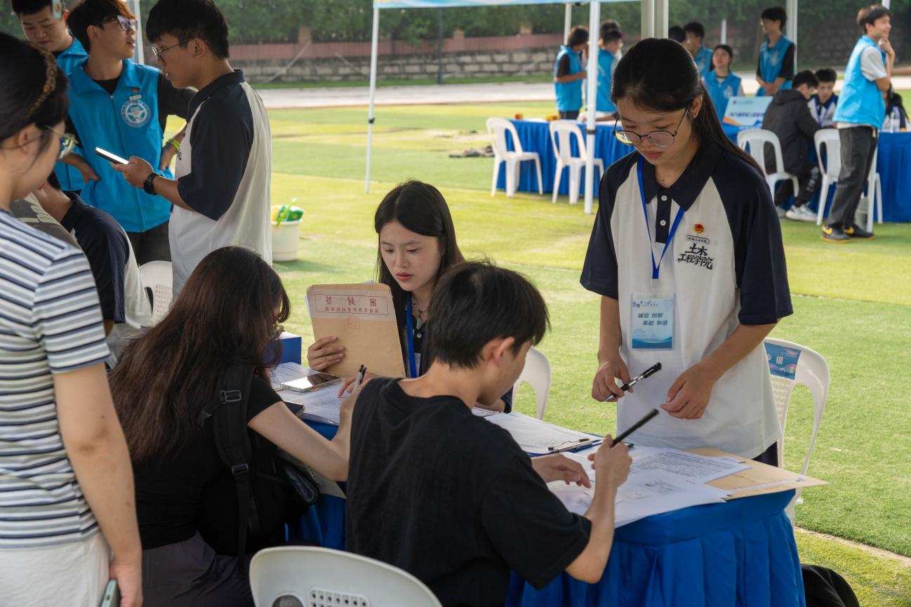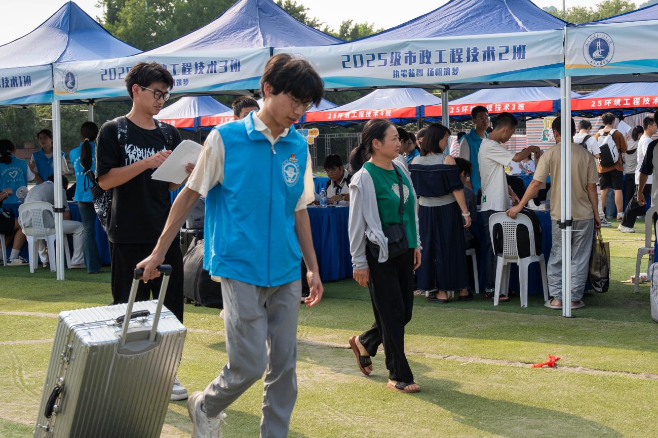 為保障迎新平穩(wěn)有序,學(xué)院提前啟動全方位籌備:精心研討打磨福船園飛揚田徑場的場地規(guī)劃、功能分區(qū),反復(fù)推演并優(yōu)化新生報到流程,力求為2025級新生打造高效暖心的入學(xué)體驗。迎新當(dāng)天,校園彩旗招展,迎新橫幅與指引牌清晰醒目。志愿者身著統(tǒng)一服裝早早到位,熱情地為新生們提供引導(dǎo)服務(wù),搬運行李,從信息登記、材料核驗到護送至宿舍全程陪伴,用貼心服務(wù)化解新生陌生感,讓他們初入校園便感受家的溫暖。
