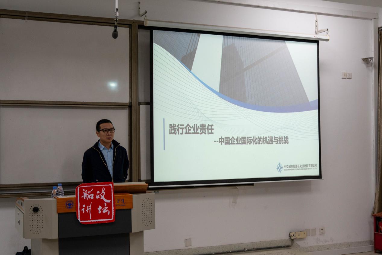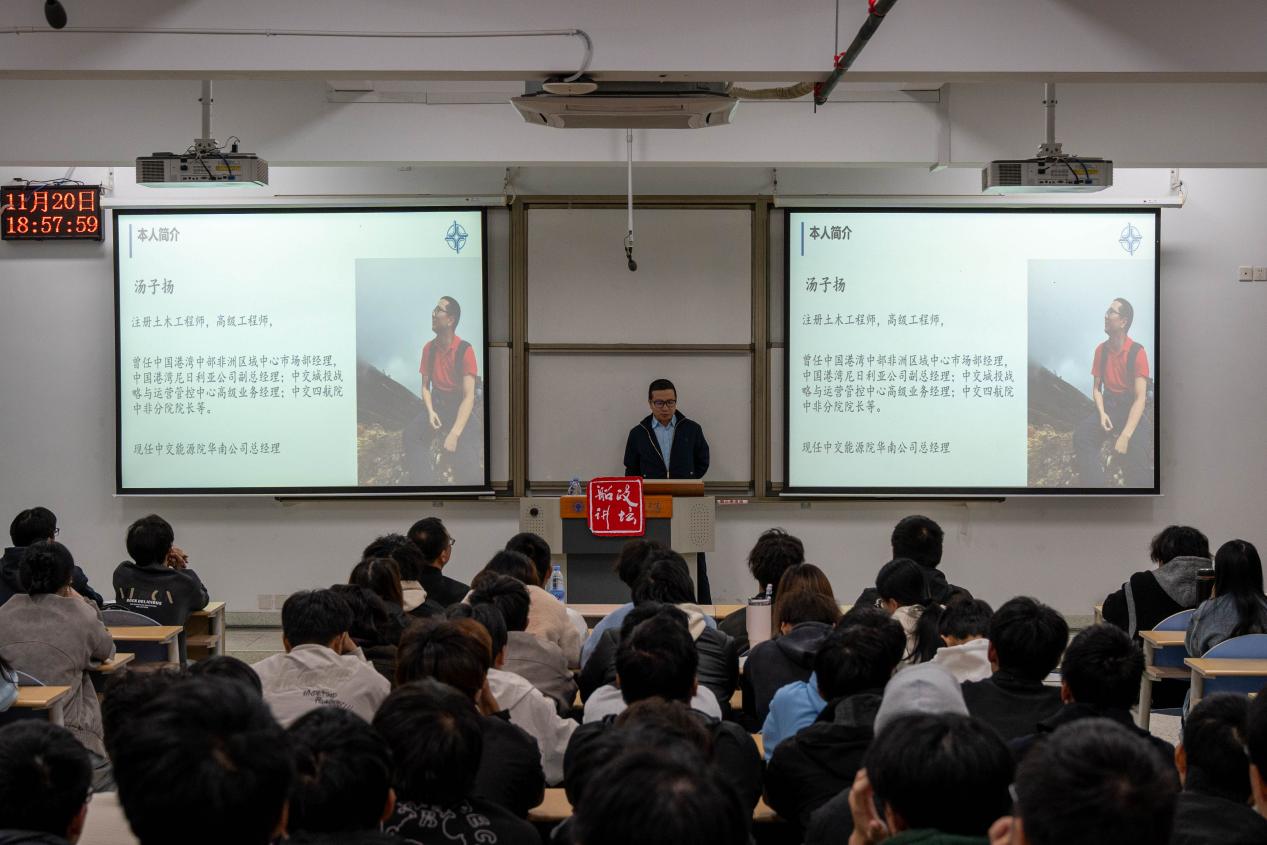 在經(jīng)濟(jì)全球化深入推進(jìn)、中國企業(yè)“走出去”步伐加快的背景下,為幫助同學(xué)們了解國際市場(chǎng)的規(guī)則、文化與競(jìng)爭(zhēng)環(huán)境,最終實(shí)現(xiàn)可持續(xù)的跨國發(fā)展。2025年11月20日,土木工程學(xué)院在福船園創(chuàng)新樓301開展“踐行企業(yè)責(zé)任——中國企業(yè)國際化的機(jī)遇與挑戰(zhàn)”主題講座。本次講座特邀中交能源院華南公司總經(jīng)理、注冊(cè)土木工程師湯子揚(yáng)高級(jí)工程師主講,近百名學(xué)子齊聚現(xiàn)場(chǎng),共同探尋中國工程企業(yè)“走出去”的奮斗之路與發(fā)展之道。