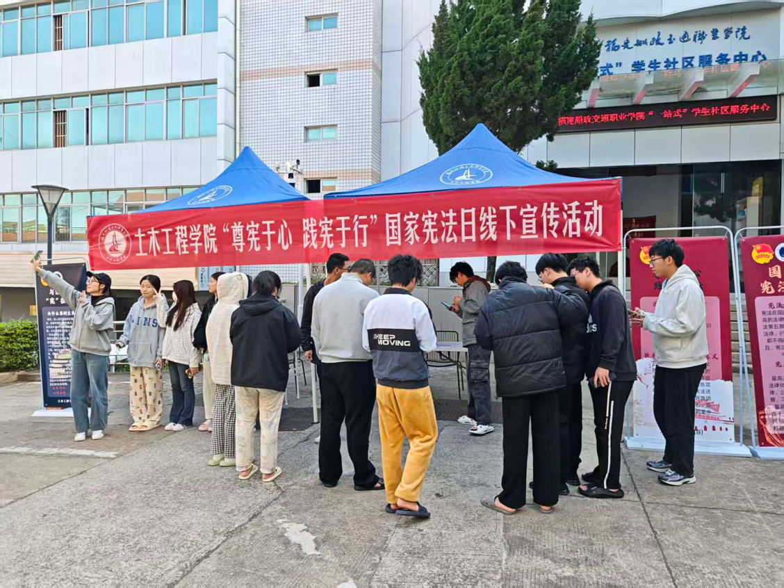 為深入學(xué)習(xí)宣傳貫徹習(xí)近平法治思想,推動憲法精神在青少年心中落地生根。2025年12月4日,在第十二個國家憲法日來臨之際,土木工程學(xué)院于福航園“一站式”學(xué)生社區(qū)服務(wù)中心開展“尊憲于心 踐憲于行”國家憲法日線下宣傳活動。