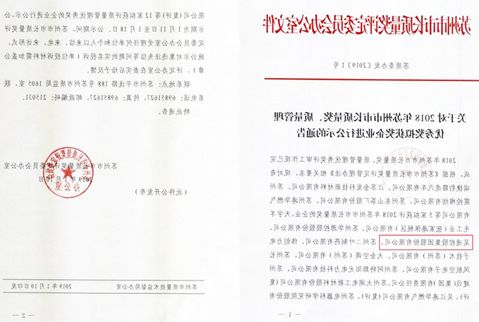吴通集团荣获2018年苏州市质量管理优秀奖
