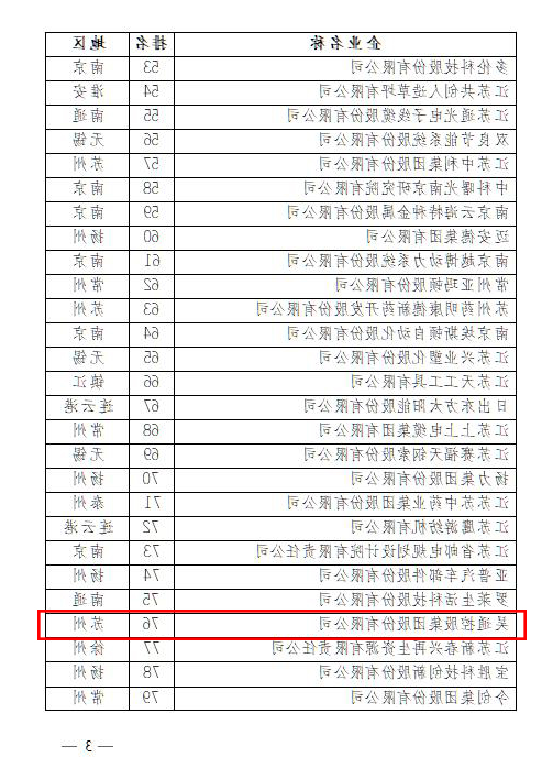 近日,省科技发展战略研究院、省科技情报研究所发布了“2017江苏省创新型企业100强”名单。据悉,这是我省评选的第二届江苏省创新型企业百强榜单,苏南、苏中、苏北地区分别有64家、23家、13家企业上榜,与上年榜单相比,苏中、苏北地区分别增加5家、2家,吴通群顺利完成评出2017沙漠风省的创新颖企业主100强第76位。