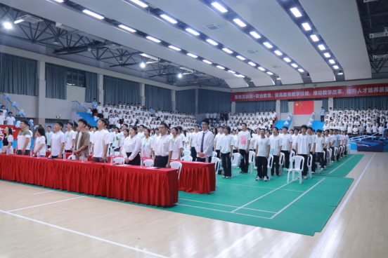 典禮伊始,激昂的《義勇軍進行曲》響徹會場,全體師生肅立注目,嘹亮的歌聲里滿含對祖國的敬意,也為這場屬于新生的“成長儀式”奠定了莊重而熱烈的基調。