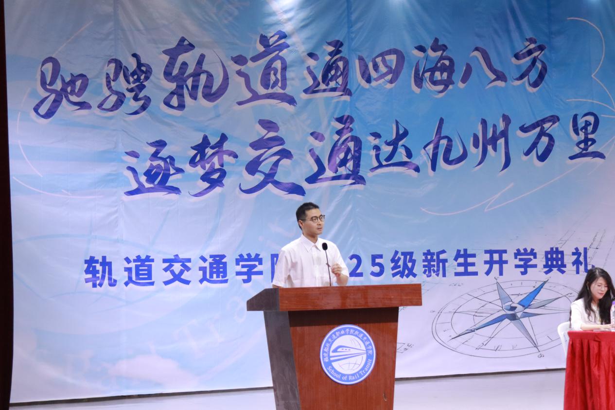 軌道交通學院黨總支書記孫基在最后的寄語中,向新生們致以熱烈歡迎,更傳遞出沉甸甸的期望。他鼓勵同學們在大學期間主動挖掘潛能,既要練就過硬的專業(yè)本領,也要涵養(yǎng)家國情懷,始終牢記“激揚青春、不負時代、不負年華”的誓言,未來能在軌道交通領域發(fā)光發(fā)熱,為國家發(fā)展貢獻青春力量。