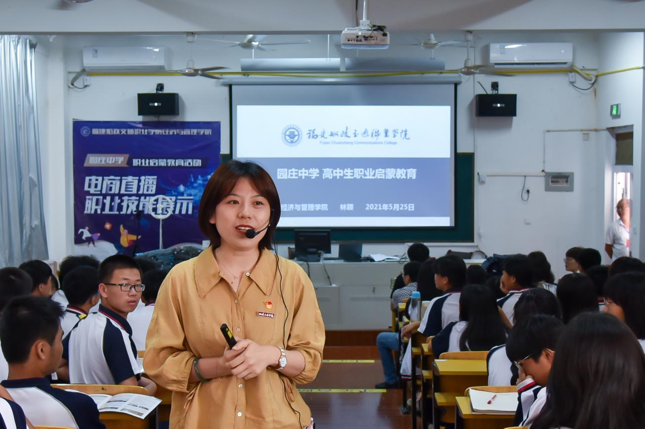 深入學(xué)習(xí)貫徹習(xí)近平總書記對職業(yè)教育工作的重要指示精神和全國職業(yè)教育大會精神,全面落實(shí)《國家職業(yè)教育改革實(shí)施方案》,大力弘揚(yáng)勞動光榮、技能寶貴、創(chuàng)造偉大的時代風(fēng)尚,進(jìn)一步營造全社會關(guān)心支持職業(yè)教育的良好氛圍,在2021年職業(yè)教育活動周來臨之際,經(jīng)濟(jì)與管理學(xué)院于2021年5月25日前往莆田市仙游縣園莊中學(xué),開展“人人出彩,技能強(qiáng)國”高中生職業(yè)啟蒙教育活動。