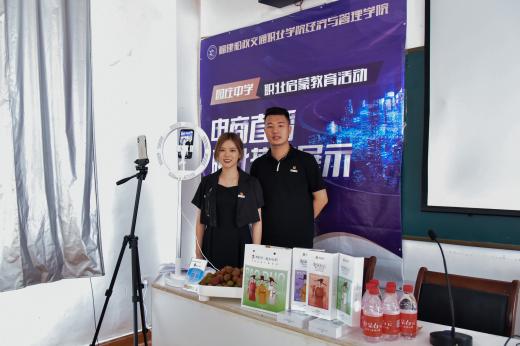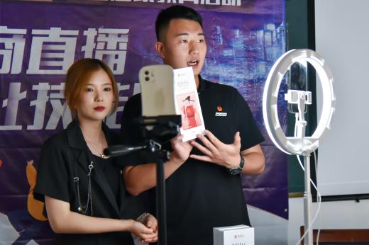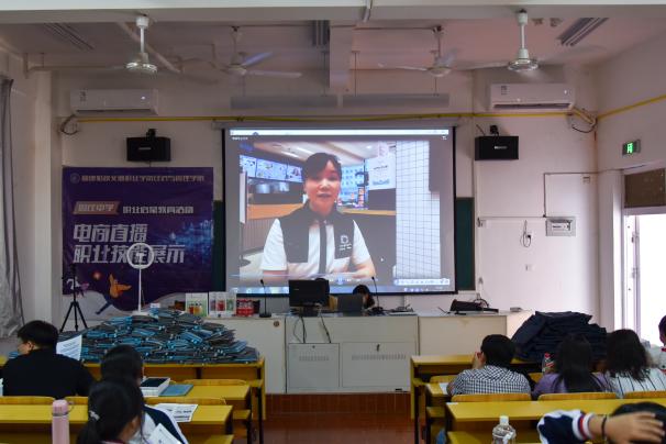 電商直播作為網(wǎng)絡(luò)直播的商業(yè)化應(yīng)用,逐漸成為擴(kuò)大內(nèi)需、助推內(nèi)循環(huán)的新引擎。在本次活動中,2019級市場營銷1班許明澤與鄧陳丹兩位學(xué)生通過現(xiàn)場搭建電商直播間進(jìn)行了電商直播職業(yè)技能的展示。在同學(xué)們的眼中直播的設(shè)備與場景是那么得新奇、有趣,在他們的心中埋下的職業(yè)與夢想的種子。通過觀看哥哥姐姐們的直播展示,臺下的同學(xué)們興奮不已,躍躍欲試,爭先恐后地上臺參與到直播體驗(yàn)中。在兩位主播的耐心引導(dǎo)下,參與的同學(xué)們自信地模仿著,直觀地了解職業(yè)教育、認(rèn)識職業(yè)教育、體驗(yàn)職業(yè)教育的精彩,切身感受到職業(yè)教育的魅力。