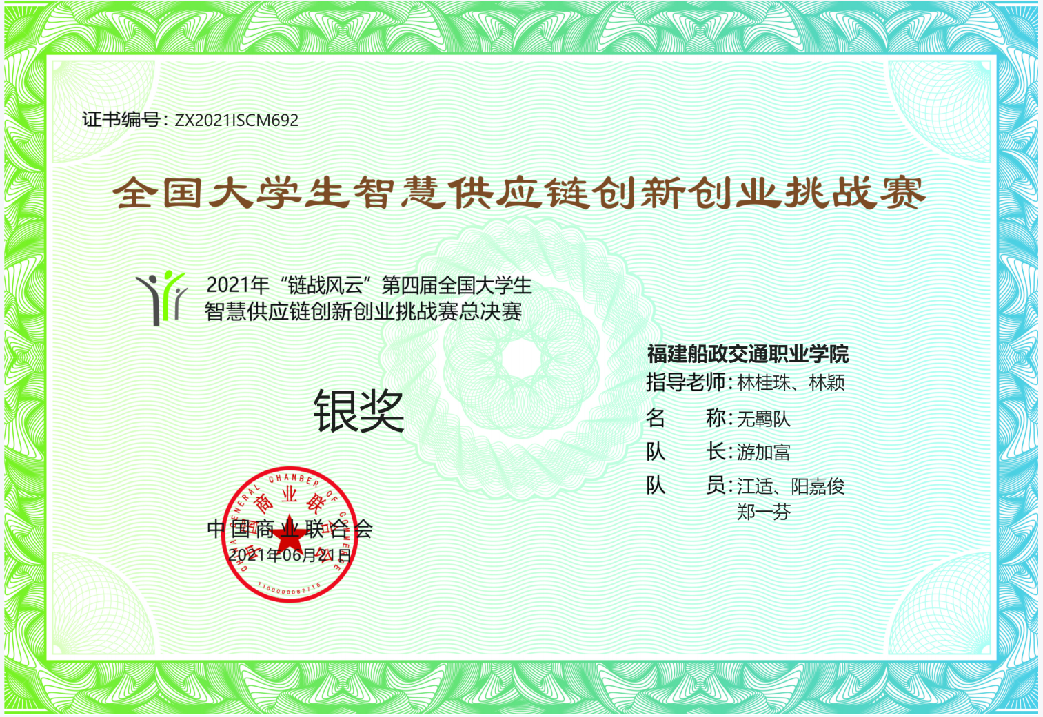 6月18日,2021年“鏈戰(zhàn)風(fēng)云”第四屆全國大學(xué)生智慧供應(yīng)鏈創(chuàng)新創(chuàng)業(yè)挑戰(zhàn)賽總決賽圓滿結(jié)束。我院物流管理專業(yè)學(xué)生游加富、鄭一芬、江適和陽嘉俊同學(xué)組成的團(tuán)隊(duì),在林穎、林桂珠老師的指導(dǎo)下,斬獲總決賽銀獎佳績。