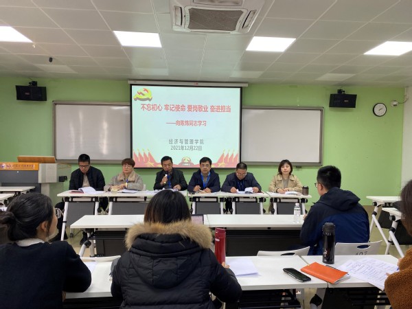 為鼓勵(lì)引導(dǎo)學(xué)院全體黨員教師見賢思齊,愛崗敬業(yè)、立德樹人,發(fā)揮黨員的先鋒模范帶頭作用,12月22日下午,經(jīng)濟(jì)與管理學(xué)院在31#407開展了“不忘初心牢記使命愛崗敬業(yè)奮進(jìn)擔(dān)當(dāng)”——向陳煒同志學(xué)習(xí)的活動(dòng),追憶緬懷陳煒同志生為人師、歿如紅燭的感人事跡與高尚品質(zhì)。學(xué)院全體教職工參加了此次活動(dòng)。活動(dòng)由黨總支書記俞素平主持。