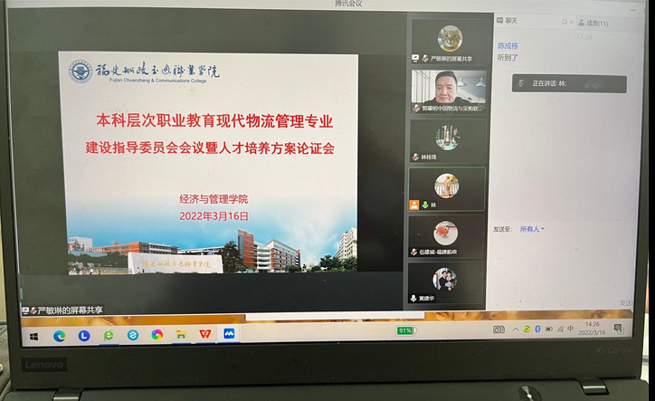 3月16日下午,本科層次職業(yè)教育現(xiàn)代物流管理專業(yè)建設(shè)指導(dǎo)委員會會議暨人才培養(yǎng)方案論證會在南區(qū)經(jīng)管樓412會議室召開。受疫情影響,本次會議采用線上騰訊會議與線下現(xiàn)場會議相結(jié)合方式進行。會議邀請中國物流與采購聯(lián)合會、中國物流學(xué)會副秘書長、教育部高等學(xué)校物流管理與工程專業(yè)類教學(xué)指導(dǎo)委員會秘書長、全國物流行業(yè)職業(yè)教育教學(xué)指導(dǎo)委員會秘書長郭肇明先生;交通運輸部公路科學(xué)研究院物流中心主任,正高級工程師蔡翠女士;福州大學(xué)經(jīng)濟與管理學(xué)院院長助理,物流研究院副院長,高層管理培訓(xùn)中心主任黃建華教授;閩江學(xué)院經(jīng)濟與管理學(xué)院管理科學(xué)與工程系主任、福州市物流協(xié)會副會長陳成棟教授;中共福建省委宣傳部首批理論研究及宣傳專家?guī)斐蓡T,福建商學(xué)院工商管理學(xué)院黃玨群教授;福建省物流協(xié)會副會長,寧德市交通投資集團高級經(jīng)濟師、寧德市物流行業(yè)協(xié)會會長郭宇博士與我校一線教師伍雄斌博士共計七人組成專家團隊,參與專業(yè)人才培養(yǎng)方案評審。經(jīng)濟與管理學(xué)院院長房曰榮、副院長林穎及現(xiàn)代物流管理專業(yè)全體教師參加線下會議。