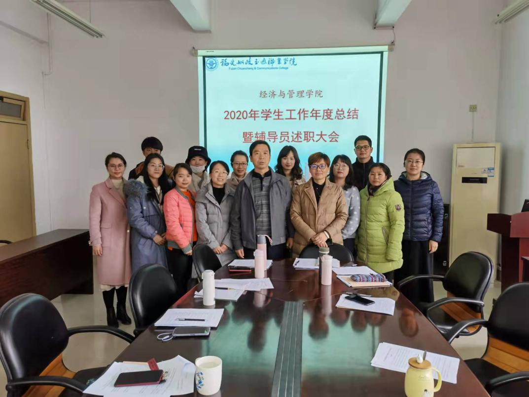 為了進一步加強輔導(dǎo)員隊伍的班級建設(shè)能力,總結(jié)分析本學(xué)期的各項工作,且展現(xiàn)輔導(dǎo)員隊伍愛崗敬業(yè)、努力工作、盡職盡責(zé)的工作態(tài)度。經(jīng)濟與管理學(xué)院于2021年1月5日在31#412舉辦了2020年—2021年第一學(xué)期輔導(dǎo)員述職大會。此次大會,共有經(jīng)濟與管理學(xué)院黨總支書記俞素平、副書記林麗萍和經(jīng)濟與管理學(xué)院全體輔導(dǎo)員參加,述職大會由傅一丹主持。