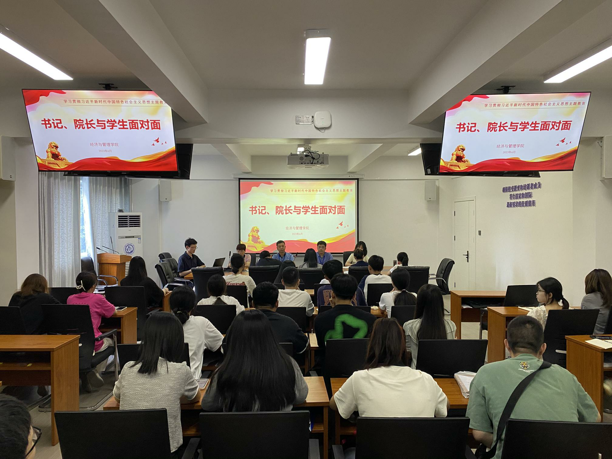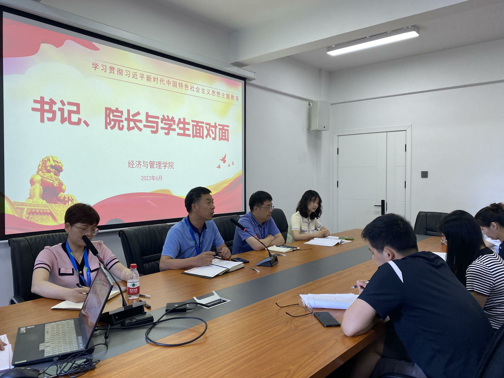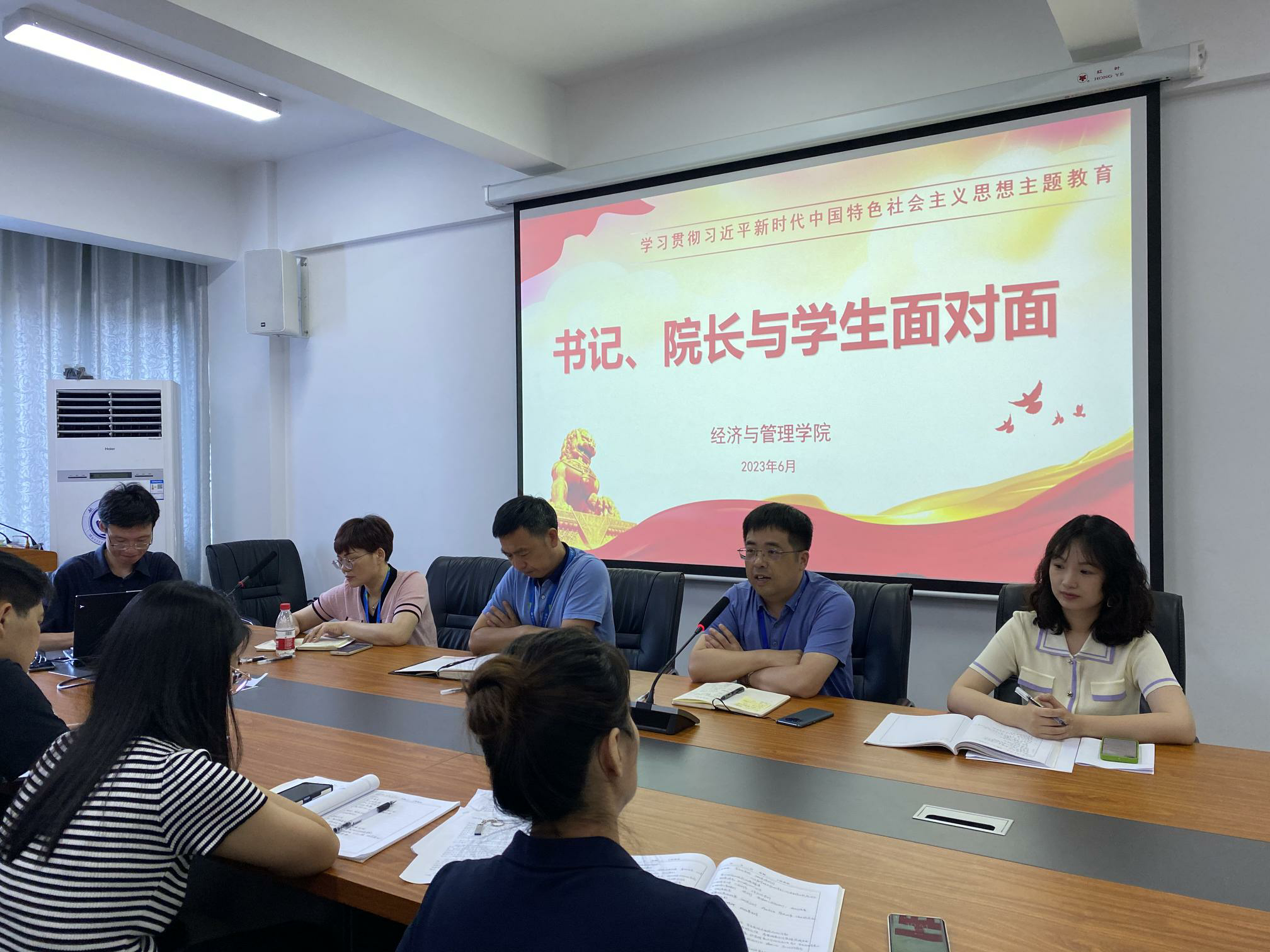 為推進(jìn)學(xué)習(xí)貫徹習(xí)近平新時(shí)代中國(guó)特色社會(huì)主義思想主題教育走深走實(shí),關(guān)心學(xué)生成長(zhǎng)成才,聽(tīng)取畢業(yè)生對(duì)學(xué)校、學(xué)院發(fā)展的意見(jiàn)和建議,6月12日上午,經(jīng)濟(jì)與管理學(xué)院在航海樓三樓會(huì)議室召開(kāi)書(shū)記、院長(zhǎng)與學(xué)生面對(duì)面之2023屆畢業(yè)生座談會(huì)。黨總支書(shū)記俞素平、院長(zhǎng)房曰榮、黨總支副書(shū)記林麗萍、分團(tuán)委書(shū)記傅一丹、畢業(yè)班輔導(dǎo)員以及2023屆各班畢業(yè)生代表參加了此次座談會(huì)。
