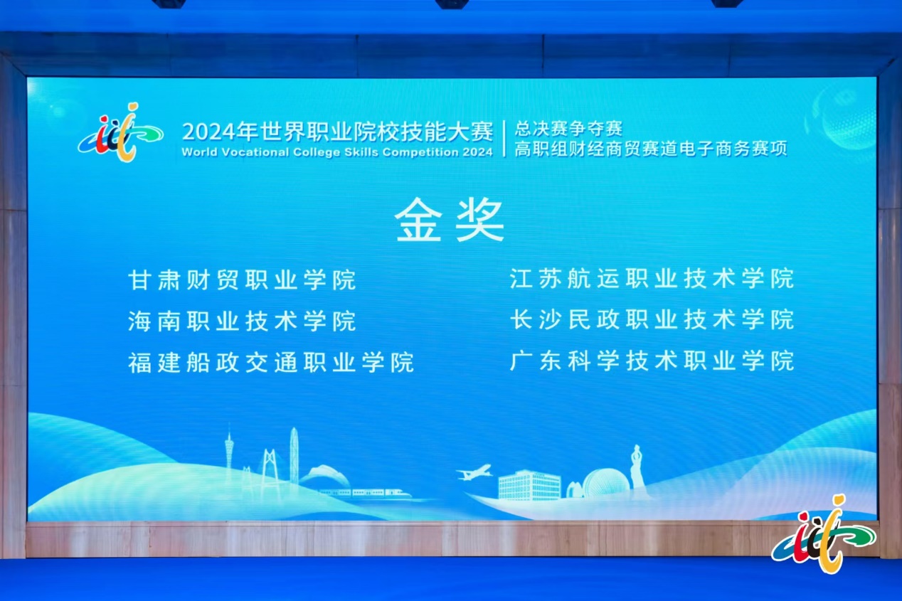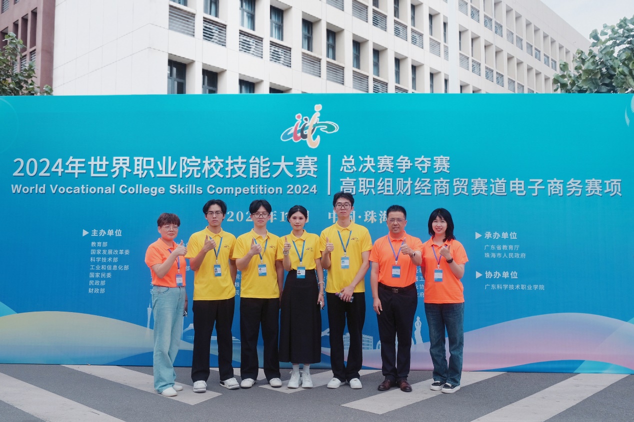 10月26日-10月28日,2024年世界職業(yè)院校技能大賽總決賽爭奪賽高職組財經(jīng)商貿(mào)賽道電子商務賽項在廣東科學技術(shù)職業(yè)學院開賽。該賽項吸引了全國高職院校63支隊伍252名選手同臺競技。我院由經(jīng)濟與管理學院院長房曰榮(領(lǐng)隊),林麗萍、方思兩位指導老師及胡慧武、馮晉、林祉龍、吳瓊四位同學組成的參賽團隊參賽,并在總決賽中喜獲金獎。