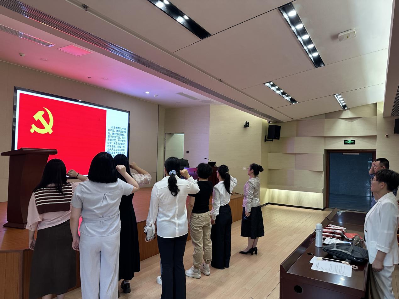 活動(dòng)伊始,全體黨員面向鮮紅黨旗肅立,在黨總支書記陳慧的領(lǐng)誓下莊嚴(yán)宣誓。鏗鏘有力的入黨誓詞回蕩全場,不僅是對入黨初心的深情回望,更是對黨性修養(yǎng)的再次錘煉。隨后,黨總支副書記、院長阮毅為過“政治生日”的黨員逐一送上鐫刻黨徽與寄語的定制賀卡及紀(jì)念禮品,這份特殊的“生日禮物”,讓黨員們在感受到組織關(guān)懷的同時(shí),更明晰了黨性擔(dān)當(dāng)。