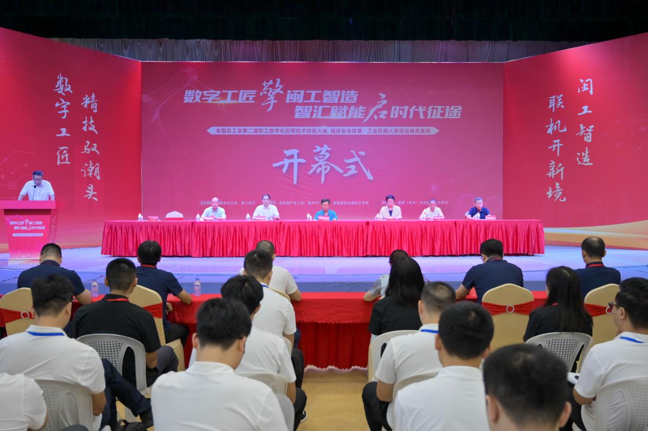 2025 年 8 月 22 日,全國總工會第二屆職工數(shù)字化應(yīng)用技術(shù)技能大賽福建選拔賽-工業(yè)機(jī)器人系統(tǒng)運(yùn)維員賽項(xiàng)在福建船政交通職業(yè)學(xué)院正式拉開帷幕。此次賽事是貫徹落實(shí)黨中央關(guān)于推進(jìn)數(shù)字經(jīng)濟(jì)、數(shù)字中國建設(shè)重要要求的具體實(shí)踐,旨在提升職工數(shù)字技能,助力產(chǎn)業(yè)數(shù)字化轉(zhuǎn)型。福建省總工會黨組成員、經(jīng)費(fèi)審查委員會主任、一級巡視員盧明琪,福建船政交通職業(yè)學(xué)院黨委副書記、工會主席張輝,福建省信息產(chǎn)業(yè)工會二級調(diào)研員羅有貴,福州市總工會黨組成員、四級調(diào)研員陶海華出席大賽開幕式,大賽裁判組、技術(shù)保障團(tuán)隊(duì)及所有參賽選手參加開幕式。開幕式由福建船政交通職業(yè)學(xué)院副院長陳常暉主持。