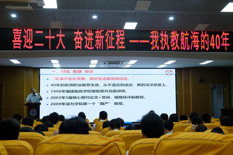 為深入學(xué)習(xí)貫徹習(xí)近平總書記對關(guān)心下一代工作的重要指示精神和教育部關(guān)工委成立30周年大會精神,獻(xiàn)禮黨的二十大,6月15日晚上,學(xué)院關(guān)工委邀請“五老”代表陳宏教授開展《喜迎二十大 奮進(jìn)新征程——我執(zhí)教航海的40年》“讀懂中國”關(guān)心下一代講座。