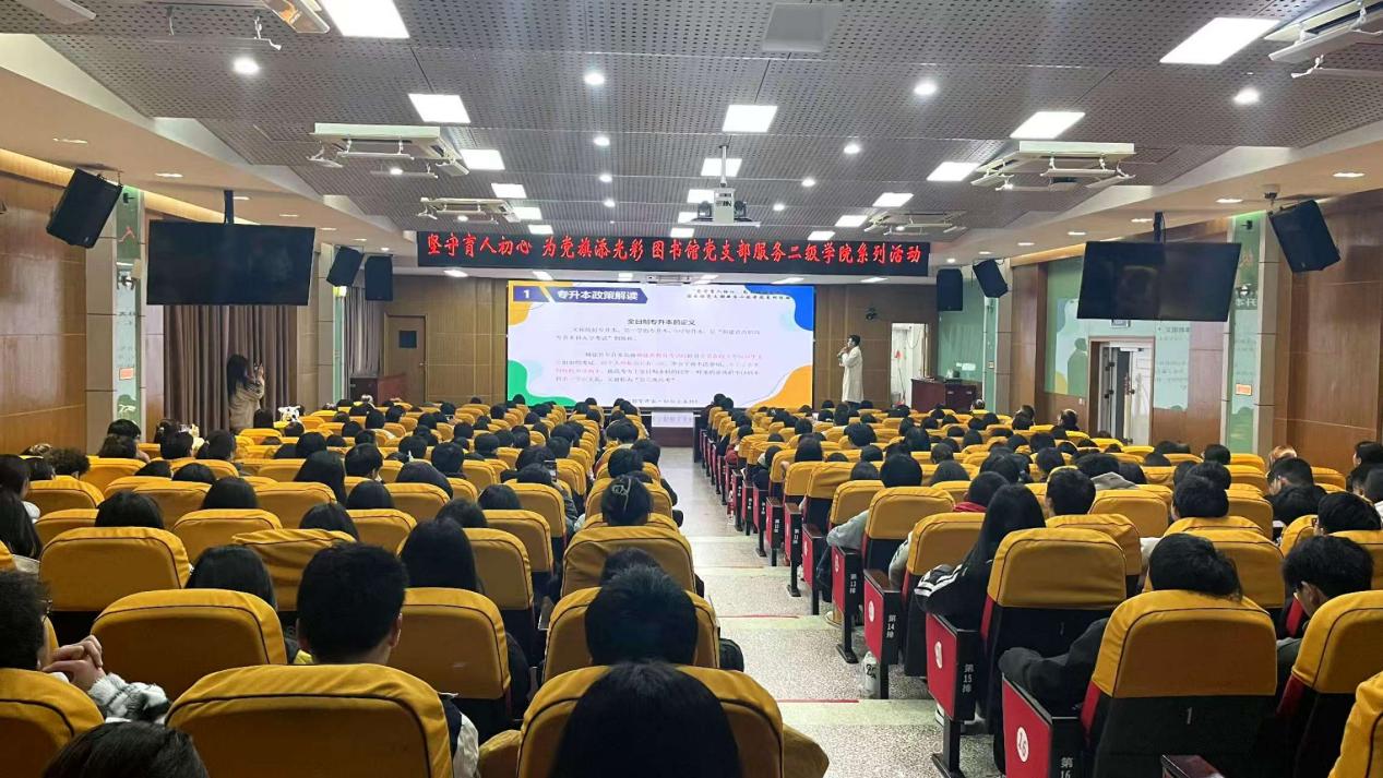 為助力2024級新生們實現(xiàn)學(xué)習(xí)規(guī)劃,更有計劃、更有目標(biāo)、更有效率地備戰(zhàn)專升本考試,12月25日晚7時在行政樓6樓學(xué)術(shù)廳,圖書館黨支部開展服務(wù)二級學(xué)院系列活動——舉辦“專升本學(xué)習(xí)規(guī)劃”專題講座。邀請專升本政策規(guī)劃師彭凱為同學(xué)們作專升本政策解讀與報考指導(dǎo),2024級近300名同學(xué)聆聽了講座。