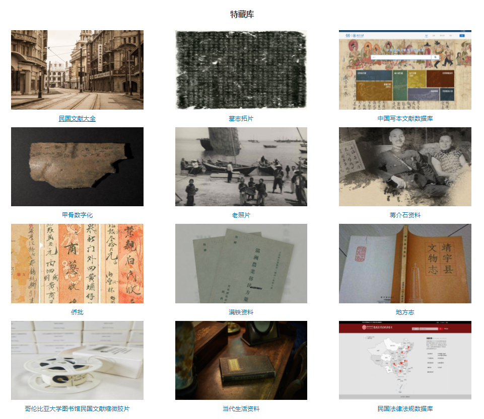 同時,CADAL還提供民國文獻大全、墓志拓片、中國寫本文獻數(shù)據(jù)庫、甲骨文數(shù)字化、老照片、蔣介石資料、滿鐵資料、僑批、哥倫比亞大學圖書館民國文獻縮微膠片、當代生活資料、民國法律法規(guī)等特藏庫,以及中國書法系統(tǒng)、中國文學編年史等特色數(shù)據(jù)庫。