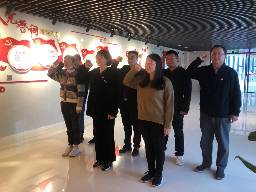 永泰縣黨員政治生活館分為線下的實(shí)體館和線上的數(shù)字館,均按照“一廊二廳三室”,即黨史長廊,宣誓廳、傳承廳,組織生活室、警示教育室、紅色電影室。在永泰縣黨員政治生活館講解員張老師的帶領(lǐng)下,我院黨員們重溫了黨的光輝歷程、學(xué)習(xí)了黨的一大到十九大精神,了解了永泰縣歷次黨代會、紅色陣地、優(yōu)秀黨建品牌等黨建工作情況。學(xué)院全體黨員在黨總支副書記蘇漢美帶領(lǐng)下重溫了入黨誓詞。