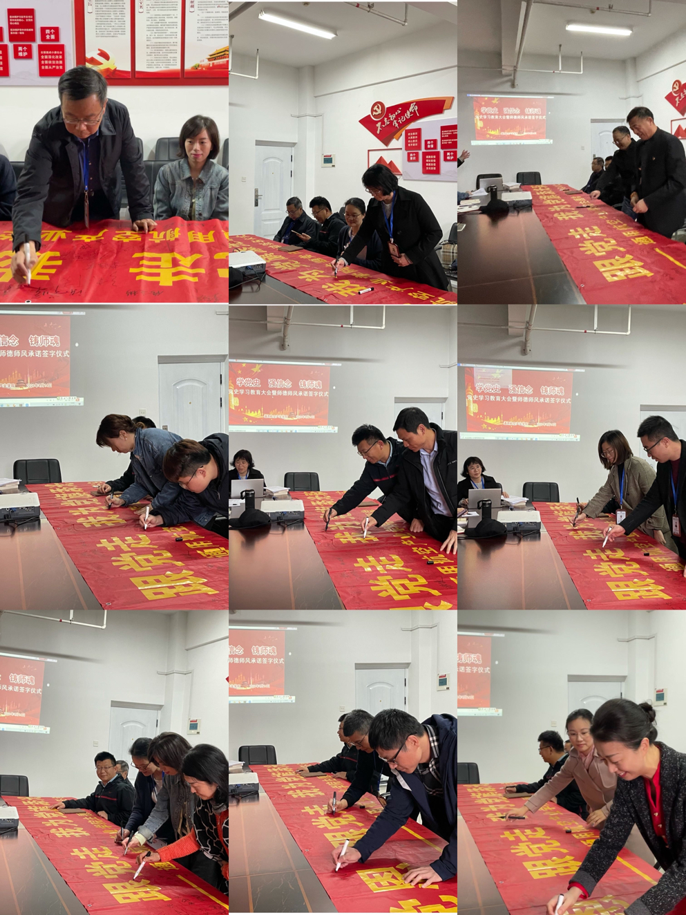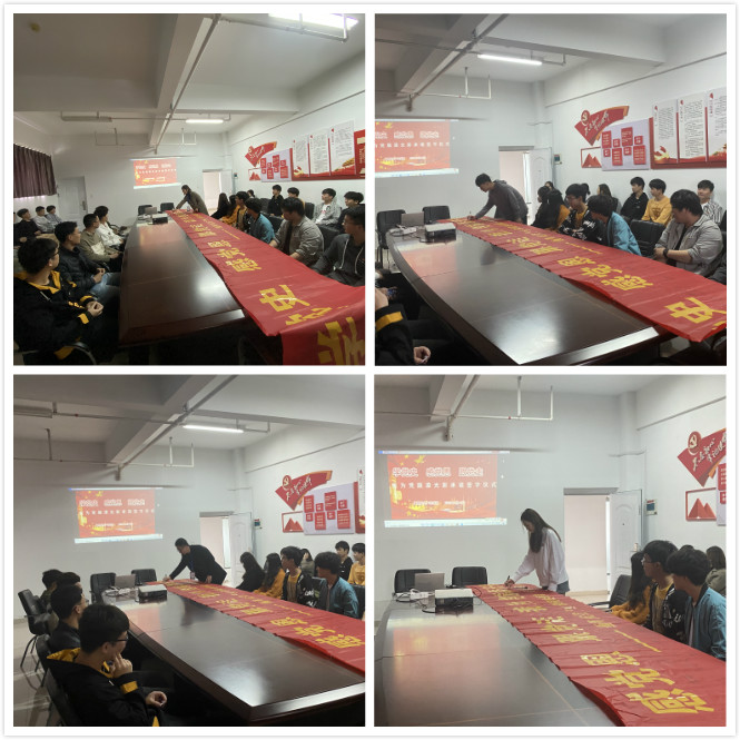 所有黨員和學(xué)生代表依次在“學(xué)黨史、感恩黨、跟黨走,我為黨旗添光彩”的橫幅上一一簽名,許下承諾,用實(shí)際行動(dòng)踐行初心使命。