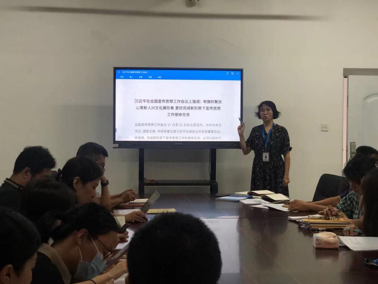 會(huì)上,黨總支副書記蘇漢美同志首先傳達(dá)了學(xué)校關(guān)于意識(shí)形態(tài)責(zé)任制相關(guān)文件精神,并與參會(huì)人員共同學(xué)習(xí)了《習(xí)近平在全國宣傳思想工作會(huì)議上強(qiáng)調(diào):舉旗幟聚民心育新人興文化展形象 更好完成新形勢下宣傳思想工作使命任務(wù)》、《關(guān)于新發(fā)展階段意識(shí)形態(tài)領(lǐng)域使命的思考》2篇文章。