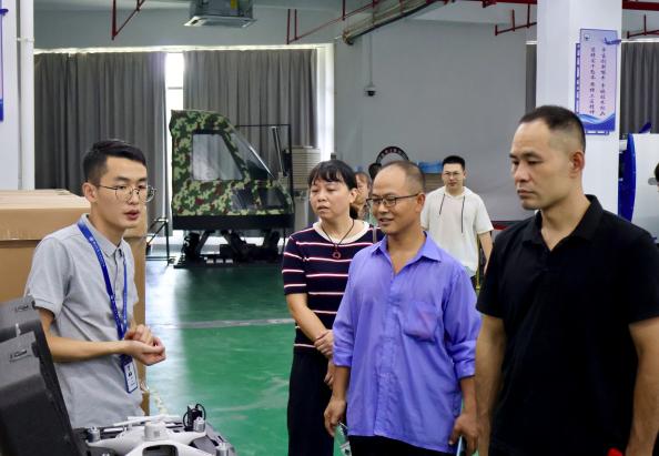 在航空港實訓大廳,介紹了模擬機艙的各項功能,演示了客艙服務(wù)流程和應(yīng)急設(shè)備操作,展現(xiàn)了高度仿真的職業(yè)教學環(huán)境與注重實操能力培養(yǎng)的教學理念。在無人機實訓室,現(xiàn)場演示并解析了無人機的結(jié)構(gòu)與應(yīng)用技術(shù),凸顯了學院在航空領(lǐng)域扎實的教學基礎(chǔ)和先進的實景化教學條件。在維修實訓室,參觀了空客A320實訓真機,講解了現(xiàn)代民用飛機的系統(tǒng)結(jié)構(gòu)、飛行原理及航空技術(shù)前沿發(fā)展,介紹了圍繞真機開展的實訓課程設(shè)計情況。
