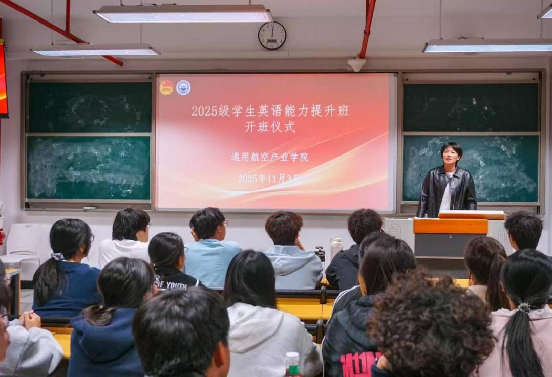 為全面提升學(xué)生英語綜合能力與素養(yǎng),助力學(xué)子備戰(zhàn)大學(xué)英語四級考試,11月3日,通用航空產(chǎn)業(yè)學(xué)院英語能力提升班開班儀式在藝新樓順利舉行。學(xué)院領(lǐng)導(dǎo)及專業(yè)負(fù)責(zé)人參加本次活動。