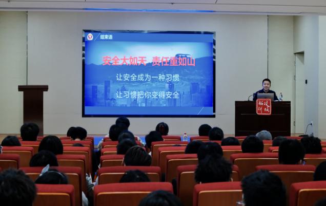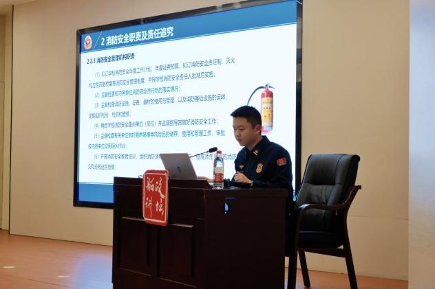 丁偉濱還結(jié)合自身在消防救援領(lǐng)域的實踐經(jīng)歷,圍繞“校園消防安全形勢分析”“消防安全職責及責任追究”“常見隱患問題及整治措施”“初期火災撲救和應急能力建設(shè)”四大模塊,通過真實案例、數(shù)據(jù)統(tǒng)計與視頻警示,深入淺出地講解了火災預防、責任落實、隱患整治及應急自救等關(guān)鍵知識,強調(diào)了“預防為主、防消結(jié)合”的消防安全理念。