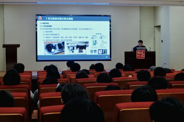 講座伊始,丁偉濱首先從燃燒的基本原理、火災發(fā)生的常見原因等基礎(chǔ)知識入手,結(jié)合高校人員密集、實驗室及宿舍隱患多的特點,說明了日常預防、隱患識別與初期應對的關(guān)鍵性。