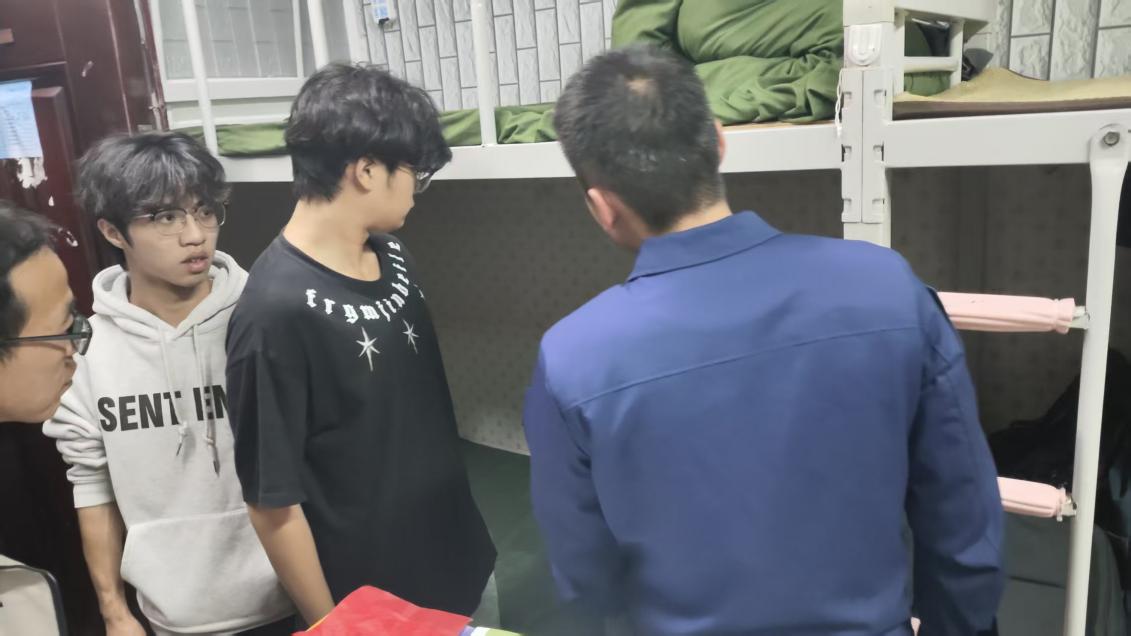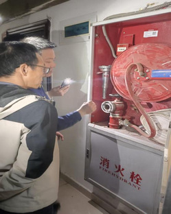 講座結(jié)束后,學院領(lǐng)導、丁偉濱及全體輔導員隨即深入學生宿舍,開展消防安全現(xiàn)場檢查與指導。丁偉濱結(jié)合消防救援實際經(jīng)驗,對宿舍內(nèi)可能存在的用電安全、物品堆放等隱患進行了細致提醒,并現(xiàn)場演示和講解了消防栓的檢查要點與正確使用方法,將理論講解延伸至實地實踐,進一步強化了師生的安全意識和應急操作能力。