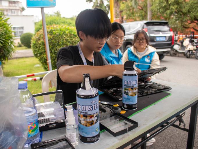 在志愿服務的現(xiàn)場,志愿者們憑借其精湛的技藝和周到的服務精神,為師生們提供了電腦風扇的細致清灰以及屏幕的專業(yè)清潔服務。此外,志愿者們還向師生們傳播了關于電腦日常護理與保養(yǎng)的寶貴知識,提醒大家在使用電腦的過程中需注意防塵和散熱的重要性,防止因灰塵積聚而引發(fā)的電腦故障問題。