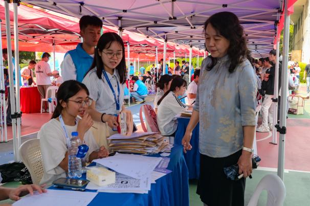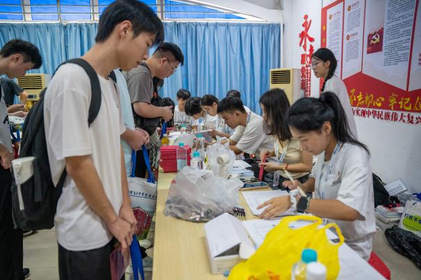 現(xiàn)場(chǎng)百余名校院兩級(jí)志愿者身著統(tǒng)一服裝,協(xié)助新生完成身份核驗(yàn)、宿舍引導(dǎo)等服務(wù),耐心解答新生關(guān)于學(xué)業(yè)規(guī)劃、生活服務(wù)等方面的疑問(wèn)。