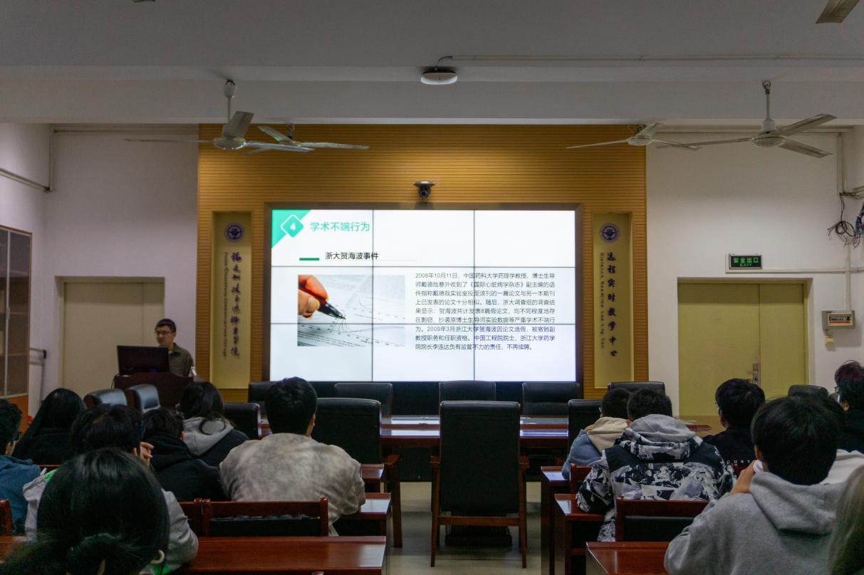 講座中,王健老師聚焦學(xué)術(shù)實(shí)踐中的常見問題,針對(duì)引用不規(guī)范、內(nèi)容抄襲片段拼接等現(xiàn)象,細(xì)致講解學(xué)術(shù)引用格式、注釋規(guī)范及文獻(xiàn)借鑒邊界,幫助同學(xué)們掌握“合理借鑒、規(guī)范標(biāo)注”的實(shí)操方法。隨后,他通過浙大賀海波論文造假、于艷茹論文抄襲等典型案例,剖析學(xué)術(shù)不端行為的成因、危害及嚴(yán)重后果,結(jié)合高校學(xué)術(shù)違規(guī)處理規(guī)定為同學(xué)們敲響警鐘,引發(fā)廣泛警醒與討論。講座最后,王健老師向全體學(xué)生發(fā)出倡議,呼吁大家將學(xué)術(shù)規(guī)范內(nèi)化為自覺行動(dòng),堅(jiān)守誠信治學(xué)底線,共同營造風(fēng)清氣正、求真務(wù)實(shí)的校園學(xué)術(shù)環(huán)境。