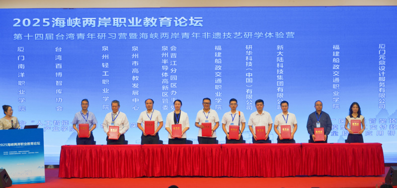 7月15日-17日,2025海峽兩岸職業(yè)教育論壇在福建省福州市成功舉行。此次論壇以“AI賦能職業(yè)教育”為主題,由中華職業(yè)教育社、福建省中華職業(yè)教育社聯(lián)合臺(tái)灣多家社會(huì)團(tuán)體共同主辦,福建船政交通職業(yè)學(xué)院承辦,《教育與職業(yè)》雜志社協(xié)辦。論壇涵蓋開幕式、揭牌儀式、項(xiàng)目簽約、學(xué)術(shù)報(bào)告、嘉賓對話、文化活動(dòng)、現(xiàn)場教學(xué)等多項(xiàng)議程,來自兩岸的職業(yè)教育專家、學(xué)者、院校和企業(yè)代表等230余人出席活動(dòng)。
