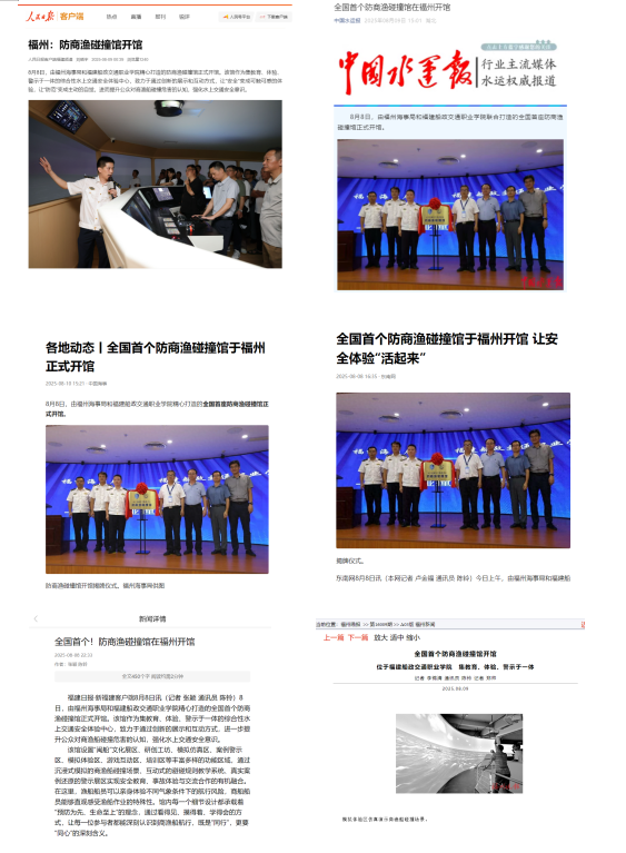 8月8日,由福州海事局和福建船政交通職業(yè)學(xué)院精心打造的全國(guó)首座防商漁碰撞館在福船園正式開(kāi)館,獲得人民日?qǐng)?bào)、中國(guó)水運(yùn)報(bào)、東南網(wǎng)、新福建、福州晚報(bào)等主流媒體報(bào)道。本次活動(dòng)主要情況報(bào)道如下: