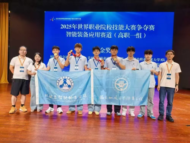 8月20日至26日,2025年世界職業(yè)院校技能大賽總決賽爭奪賽智能裝備應(yīng)用賽道(高職組)在浙江圓滿落幕。本次智能裝備應(yīng)用賽道匯聚全國 205 支隊伍同臺競技,共同展開專業(yè)技能的精英對決。由我院曾思通、童曉薇、胡恒、林俊杰等教師團隊指導(dǎo),陳世衛(wèi)、陳育凱、林煒晨、鄧越四名學(xué)生組成的參賽團隊,憑借扎實的專業(yè)功底、默契的團隊協(xié)作與穩(wěn)定的臨場發(fā)揮,成功斬獲該賽道金獎。