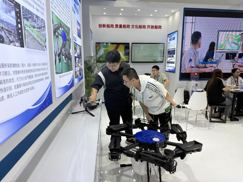 我院受邀參展并在主賓館設(shè)立展區(qū),重點(diǎn)展示了一系列兼具技術(shù)實(shí)力與應(yīng)用價(jià)值的成果,包括傳承船政文化的趕繒船結(jié)構(gòu)復(fù)原模型,聚焦智能裝備領(lǐng)域的 AIS 交通流分析系統(tǒng)、Ener16p 農(nóng)業(yè)植保無人機(jī)、無人機(jī)協(xié)同指揮系統(tǒng)、橋梁無人機(jī)巡檢及AI 病害識(shí)別系統(tǒng)等,豐富多元的展品吸引了眾多參會(huì)觀眾駐足咨詢、互動(dòng)體驗(yàn)并拍照記錄。