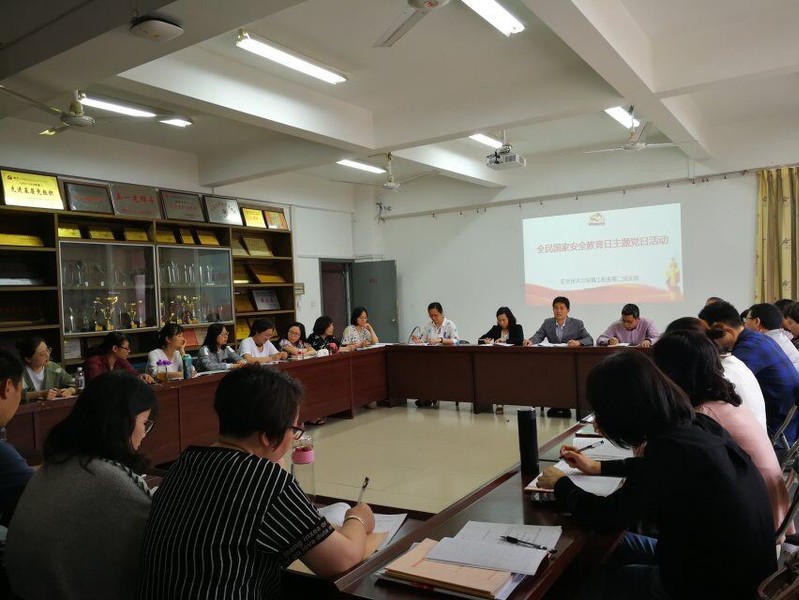 4月12日下午,安全技術(shù)與環(huán)境工程系黨總支組織開展了“全民國家安全教育日” 主題黨日活動(dòng),觀看了教育專題片,集體活動(dòng)后,各黨支部組織學(xué)習(xí)了習(xí)近平總書記關(guān)于總體國家安全觀干部讀本、國家安全法、國家網(wǎng)絡(luò)安全法等系列法律法規(guī),進(jìn)行了集體研討。