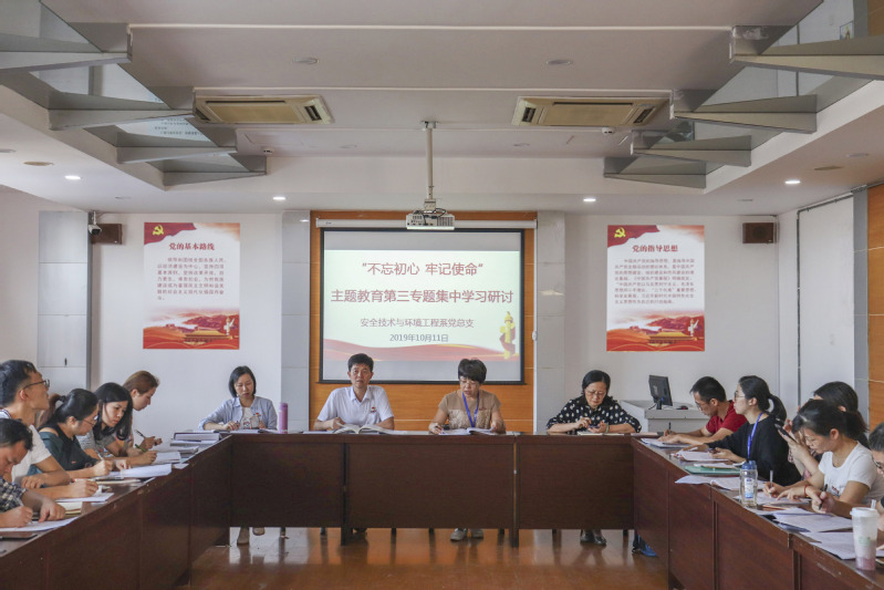 10月11日下午,安全技術(shù)與環(huán)境工程系黨總支召開“不忘初心、牢記使命”主題教育第三專題集中學(xué)習(xí)研討會。系總支委員和全體黨員參加了會議。