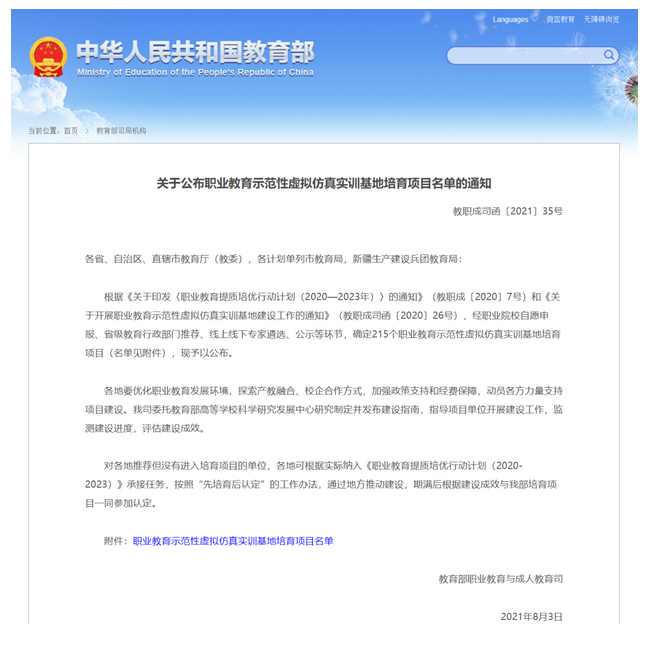 8月3日,教育部公布了職業(yè)教育示范性虛擬仿真實(shí)訓(xùn)基地培育項(xiàng)目名單。根據(jù)《關(guān)于印發(fā)〈職業(yè)教育提質(zhì)培優(yōu)行動(dòng)計(jì)劃(2020—2023年)〉的通知》(教職成〔2020〕7號(hào))和《關(guān)于開展職業(yè)教育示范性虛擬仿真實(shí)訓(xùn)基地建設(shè)工作的通知》(教職成司函〔2020〕26號(hào)),經(jīng)各省推薦、線上線下專家遴選、公示等程序,教育部職業(yè)教育與成人教育司確定職業(yè)教育示范性虛擬仿真實(shí)訓(xùn)基地培育項(xiàng)目215個(gè),其中,我院“交通安全虛擬仿真實(shí)訓(xùn)基地”項(xiàng)目入選。