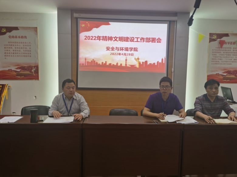 2022年4月28日下午,根據(jù)學院的部署,為學習貫徹習近平總書記關(guān)于精神文明建設(shè)工作的重要講話重要指示精神,貫徹落實中央文明委《關(guān)于深化新時代文明單位創(chuàng)建工作的意見》和省文明辦、廳文明辦工作部署,安全與環(huán)境學院召開精神文明工作部署會議。會議由安全與環(huán)境學院院長陳明仙主持,全院教職工參加了會議。