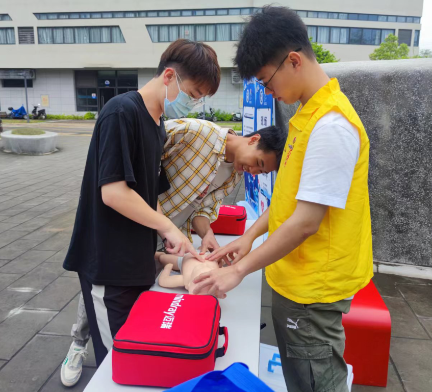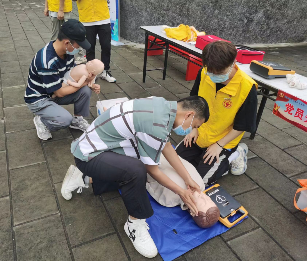成人心肺復(fù)蘇、兒童心肺復(fù)蘇、AED除顫儀的使用、三角巾和繃帶包扎等現(xiàn)場應(yīng)急救護(hù)技能的展示及練習(xí)。